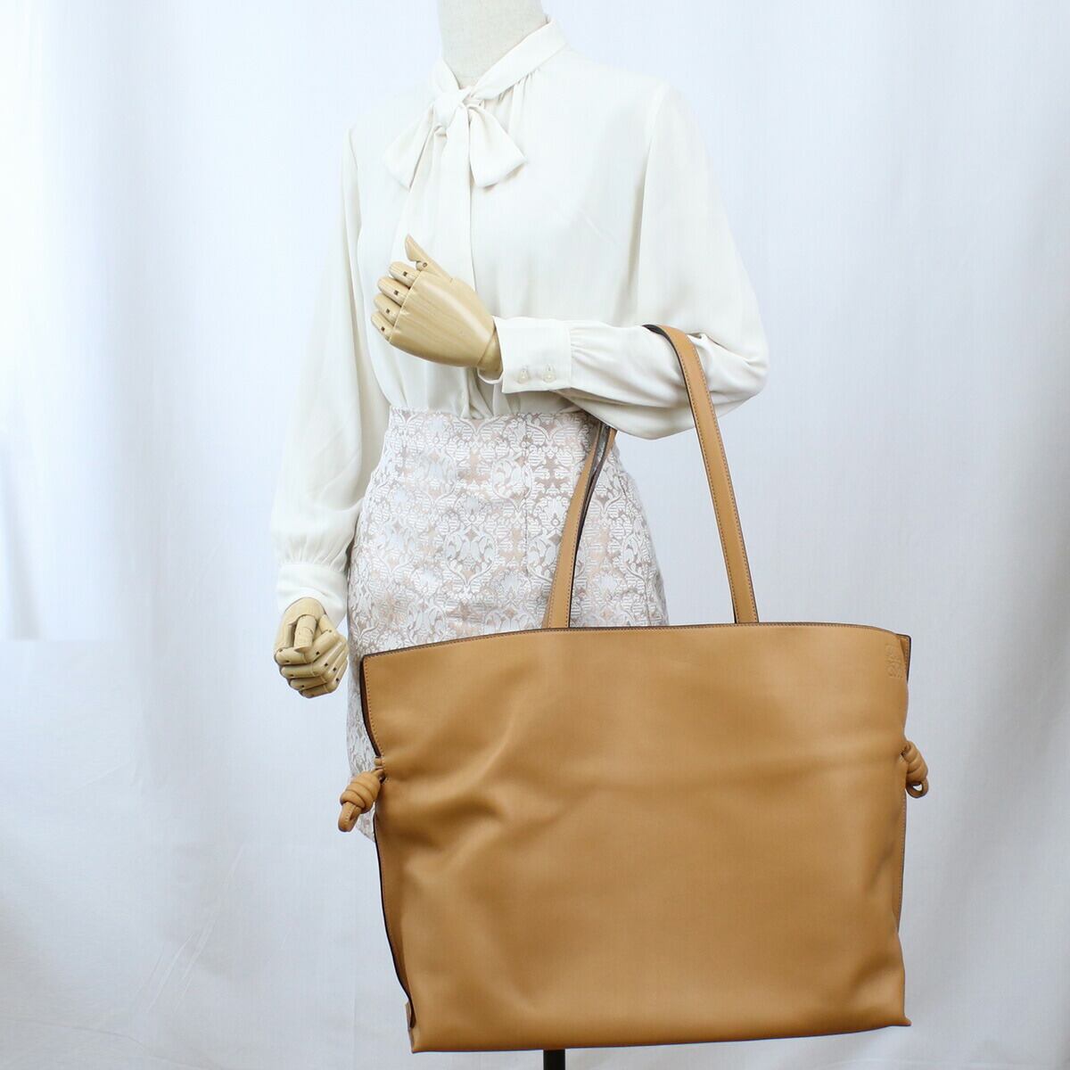 <span><b>ロエベ(LOEWE)<br/>トートバッグ</b></span><br/><br/><br/><br/><br/><table><tbody><tr><td>品名</td><td>ロエベ(LOEWE)<br/>トートバッグ</td></tr><tr><td>状態</td><td>新品・未使用</td></tr><tr><td>品番</td><td>A411X12X02</td></tr><tr><td>カラー(カラーNo.)</td><td>WARMDESERTブラウン系(2586)<br/>金具色:ゴールド</td></tr><tr><td>素材(素材No.)</td><td>ナパカーフ</td></tr><tr><td>サイズ(cm)</td><td>W45×H33×D15cm<br/>ハンドル長さ:約75cm<br/>ハンドル高さ:約28cm<br/>開口部:約42cm<br/>重量:約900g</td></tr><tr><td>仕様</td><td>マグネットホック開閉<br/>内側:<br/>ファスナーポケット×1<br/>肩掛け可<br/>A4ファイル収納可<br/>原産国:スペイン<br/><span>※原産国についてはその他諸外国にて生産している場合がございます。仕入れ時期によって表記と異なる場合がございます。</span></td></tr><tr><td>付属品</td><td>純正保護袋</td></tr></tbody></table><br/><br/><table><tbody><tr><td>スペイン、マドリード市内に数人のスペイン人職人によって皮革工房が開かれたのがルーツ。その後、ドイツの職人であったエンリケ・ロエベ・ロスバーグがパートナーとして加わり、1892年にE.ロエベブティックを開いたのが始まりとされています。それは高品質かつオリジナリティに溢れ、たちまちスペイン王室御用達の称号を授かりました。バルセロナでの2号店オープンを皮切りに、店舗を確実に増やしていった中、特にマドリード市内のセラーノ通りに建てたブティックには、スペインで最も権威のある建築家。ハビエル・カルバハルが携わっており、スカンジナビアスタイルと呼ばれる内装と外装にコントラストを効かせた店舗コンセプトがアバンギャルドなブランドといった新たなロエベの評価を得るきっかけとなりました。<br/><br/>スペインのみならずロンドン、パリ、サンフランシスコ、東京、香港、シドニーなど、主要都市に出店しており、現在においてはルイ・ヴィトンなどに代表されるLVMHグループに属しています。</td></tr></tbody></table><br/><br/><span></span><br/><br/><b><span>※本商品はご注文のタイミングやご注文内容によっては、<br/>購入履歴からのキャンセル、変更は受け付ける事ができない場合がございます。</span></b><br/><br/><span></span>
