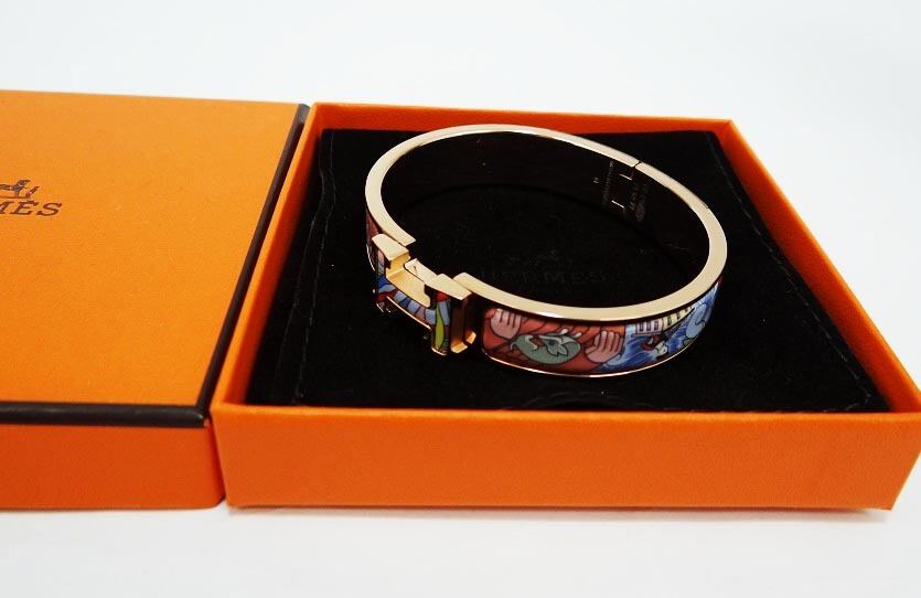 注目度抜群のエルメスのブレスレットとわかる・クリックH・です。<br/>カジュアルからドレッシーな格好まで、幅広く合わせて頂けるエレガントなデザインが好評ですす。イニシャルの留め具をひねることで簡単に着脱することが可能です。<br/><br/>製品名:HERMESエルメスクリックHコスモグラフィア・ユニバースH701311FD<br/>型番:H701311FD<br/>製品仕様<br/>カラー:No.B9ALBUMDESOIE<br/>素材:ピンクゴールドプレーテッド<br/>サイズ:PM16.8cm<br/>付属品:エルメス専用箱<br/><br/>※エルメスはフランスを代表するファッションブランド。<br/>エルメスの創業は1837年。当時は馬具工房としてナポレオン6世やロシア皇帝などを顧客として今し発展しました。自動車の普及、馬車の衰退に伴い、鞄、財布といった皮革製品さらに腕時計や服飾品、装身具香水などの分野にも手を広げ、成功していきました。<br/>代表的な皮革製品にはケリーバッグやバーキンなどのバッグが挙げられます。
