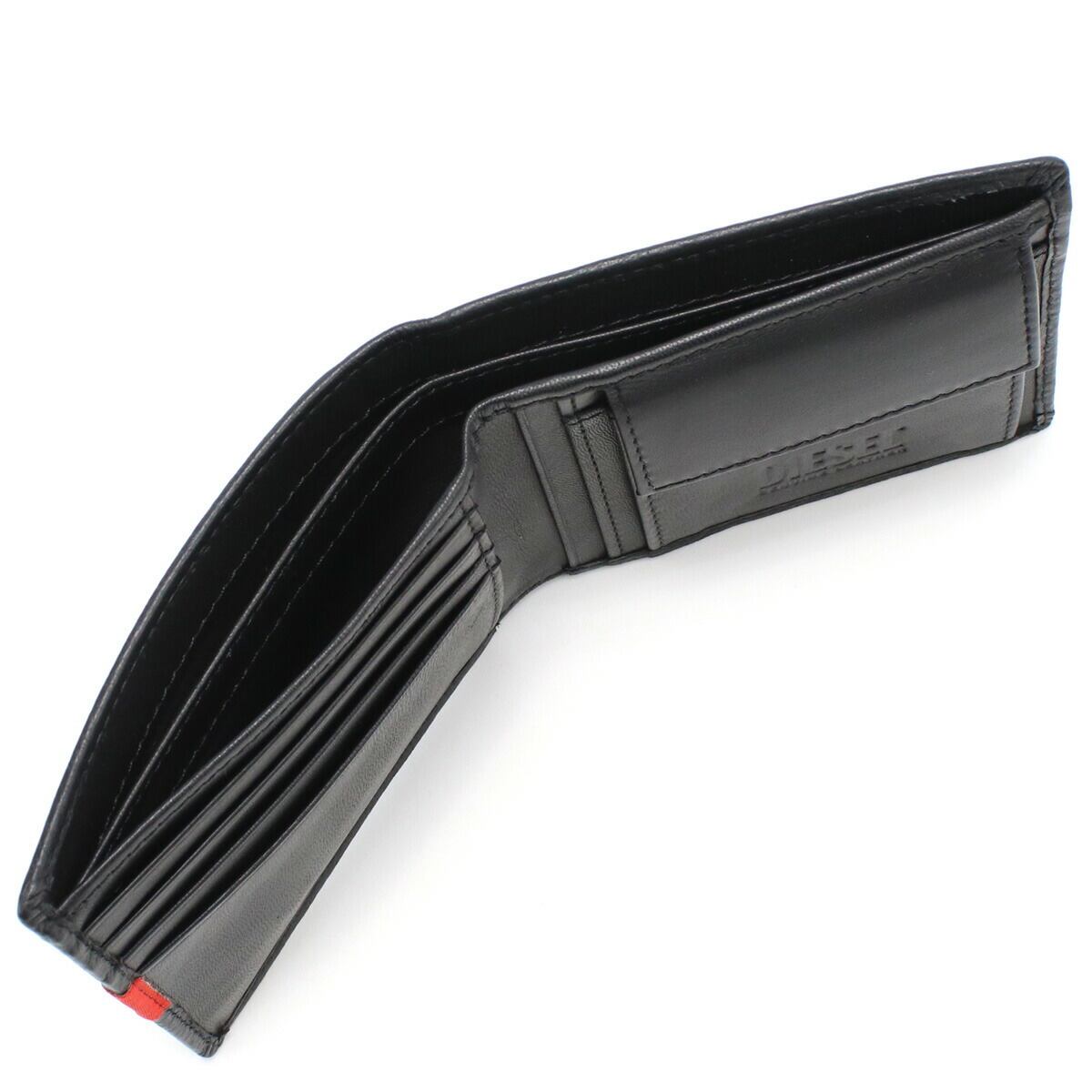 <fontcolor='Black'size='2'><b>ディーゼル(DIESEL)<br>二折財布小銭入付き</b></font><br><br><BR><BR><BR><table><tbody><tr><td>品名<br></td><td>ディーゼル(DIESEL)<BR>二折財布小銭入付き</td></tr><tr><td>状態<br></td><td>新品・未使用<br></td></tr><tr><td>品番<br></td><td>X09358</td></tr><tr><td>カラー(カラーNo.)<br></td><td>ブラック(T8013)<BR>金具色:ガンメタリック<br></td></tr><tr><td>素材(素材No.)</td><td>レザー<br></td></tr><tr><td>サイズ(cm)</td><td>W11×H9.5×D2cm<BR></td></tr><tr><td>仕様<br></td><td>オープンタイプ<br>内側:<br>札入れ×2<br>カードポケット×4<br>小銭入れ×1<br>オープンポケット×3<br>背面:<br>カードポケット×1<br>生産国:インド</td></tr><tr><td>付属品<br></td><td>純正BOX<br></td></tr></tbody></table><BR><BR><table><tbody><tr><td>DIESELは1978年イタリアでレンツォ・ロッソ氏によって生み出されました。数々の賞を受賞しながらも、既成の流行を追い求めるものではなく、独特かつユニークなアイデアで革新的なライフスタイルファッションを常に提案し続けています。<BR>イギリスの若者3000名を対象にスーパーブランド・リミテッドが行った世論調査で「何が一番かっこいいですか?」の質問に、ファッションカテゴリーにてDIESELは1位に選ばれるなど、ヨーロッパやアメリカを中心に人気の高いブランドです。</td></tr></tbody></table><BR><BR><fontsize='2'color='red'></font><br><br><b><fontsize='2'color='red'>※本商品はご注文のタイミングやご注文内容によっては、<br>購入履歴からのキャンセル、変更は受け付ける事ができない場合がございます。</b></font><br><br><fontsize='1'color='#333333'></font>