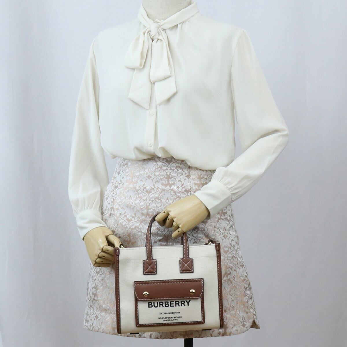 <fontcolor='Black'size='2'><b>バーバリー(BURBERRY)<br>トートバッグ</b></font><br><br><BR><BR><BR><table><tbody><tr><td>品名<br></td><td>バーバリー(BURBERRY)<BR>トートバッグ</td></tr><tr><td>状態<br></td><td>新品・未使用<br></td></tr><tr><td>品番<br></td><td>8044143</td></tr><tr><td>カラー(カラーNo.)<br></td><td>NATURAL-TANホワイト系ブラウン系(A1395)<BR>金具色:ゴールド<br></td></tr><tr><td>素材(素材No.)</td><td>コットン<br></td></tr><tr><td>サイズ(cm)</td><td>W23×H19×D8cm<BR>ハンドル長さ:約25cm<BR>ハンドル高さ:約8cm<BR>ショルダー長さ:約98~108cm<BR>開口部:約20cm<BR>重量:約380g</td></tr><tr><td>仕様<br></td><td>オープンタイプ<br>内側:<br>オープンポケット×1<br>正面:<br>マグネットポケット×1<br>肩掛け不可<br>ショルダー取り外し不可<br>A4ファイル収納不可<br>生産国:イタリア<br></td></tr><tr><td>付属品<br></td><td>純正保護袋<br></td></tr></tbody></table><BR><BR><table><tbody><tr><td>BURBERRYは1901年に誕生したイギリスを代表するブランドです。創立者トーマス・バーバリーは、耐久、防水に優れた新しい素材を考案し、1911年には人類初の南極点到達者アムンゼンが防寒具として着用しました。<BR>その後も改良に改良を重ね、1955年にはエリザベス2世のロイヤルワラントを、1989年には英国皇太子に認証を授かり、王室御用達のブランドになっています。若い世代にもフォーマルからカジュアルまで広く展開するBURBERRYですが、日本では現在イギリス製のBURBERRYは入手困難になっています。</td></tr></tbody></table><BR><BR><fontsize='2'color='red'></font><br><br><b><fontsize='2'color='red'>※本商品はご注文のタイミングやご注文内容によっては、<br>購入履歴からのキャンセル、変更は受け付ける事ができない場合がございます。</b></font><br><br><fontsize='1'color='#333333'></font>